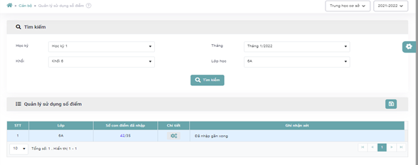- Bước 1: Đăng nhập >> vào Menu “Cán Bộ” >> vào chức năng “Quản lý sử dụng sổ điểm”