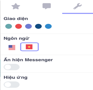- Bước 3: Cài đặt Giao diện, Ngôn ngữ, Ẩn hiện Messenger và Hiệu ứng theo nhu cầu NSD