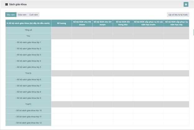 Bước 1 : Đăng nhập >> Vào menu “Cơ sở vật chất” >> Vào Chức năng “Quản lý CSVC”>> Chọn “ Sách giáo khoa”. => Hiển thị màn hình