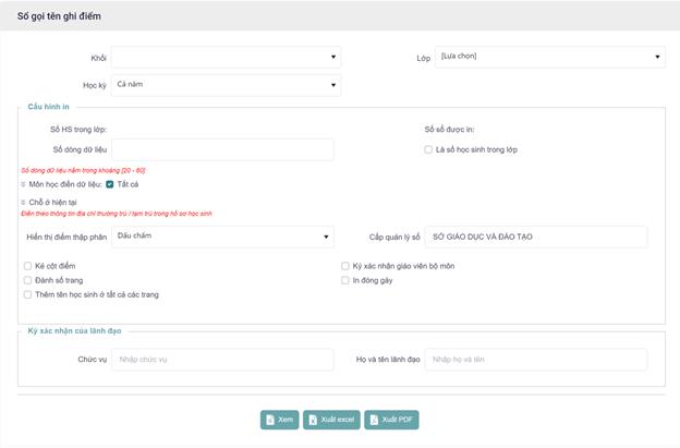 Bước 2: Hiển thị màn hình sổ gọi tên ghi điểm