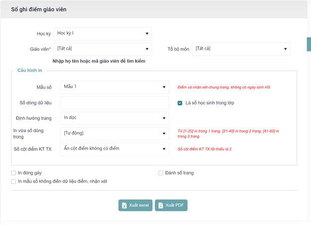 Bước 1: Đăng nhập >> Vào menu “Báo cáo” >> Chọn “Báo cáo kết quả học tập” >> Chọn “Sổ theo dõi và đánh giá học sinh”.
