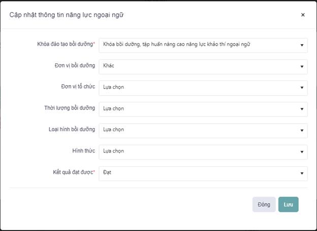 Bước 4: Nhấn button Lưu để hoàn tất sửa hoặc nhấn button Đóng để quay về popup hình Xem Quá trình bồi dưỡng năng lực sư phạm