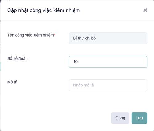 Bước 3: Hiển thị ra popup Cập nhật công việc kiêm nhiệm: