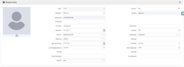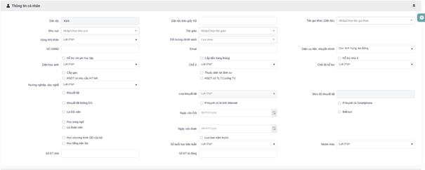 - Trường “Dân tộc” không thể nhập được và load dữ liệu theo trường dân tộc đã chọn phần thông tin chung