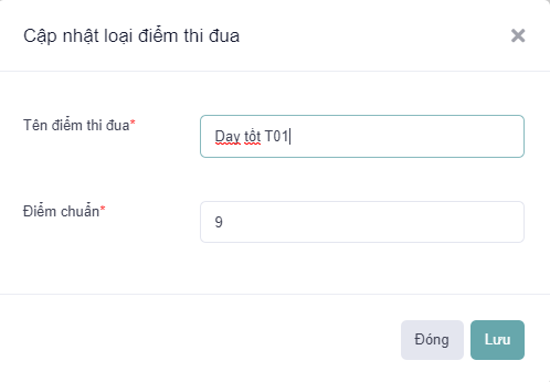 - Bước 3: Hiển thị ra popup Cập nhật Loại điểm thi đua: