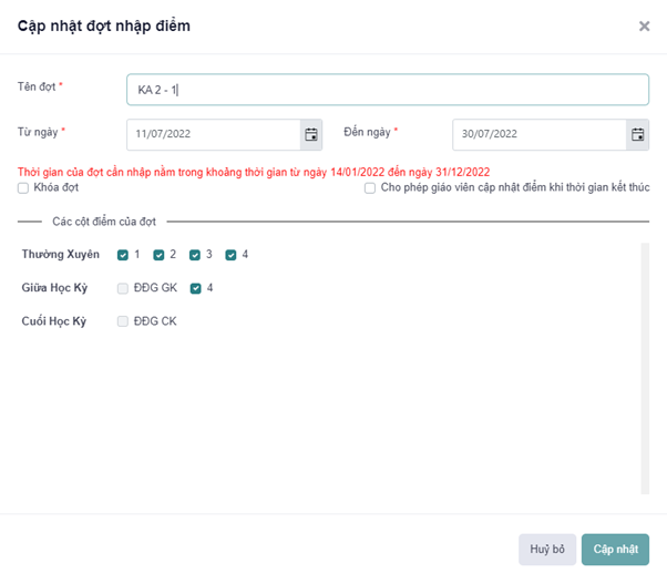 đợt nhập điểm”, NSD kích chọn tại đợt