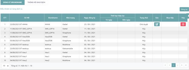 > Tab Đăng ký Brandname