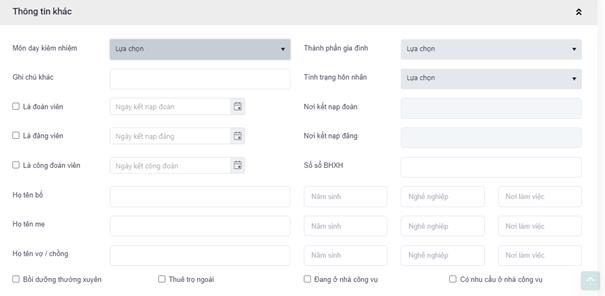 - Đánh giá viên chức, Giáo viên dạy giỏi không cho phép nhập , kết quả được lấy từ chức năng " Đánh giá xếp loại" theo năm học