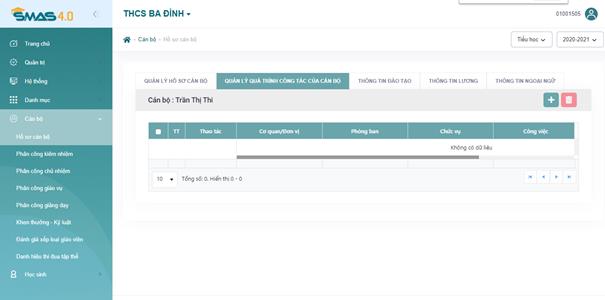 >> Chọn tab “Quá trình công tác của cán bộ”