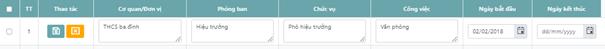 - Cơ quan/Đơn vị, Phòng ban, Chức vụ, Công việc , ngày bắt đầu bắt buộc nhập