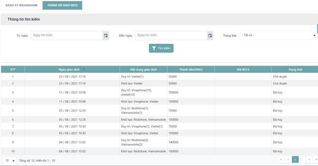 “ Thống kê giao dịch”.