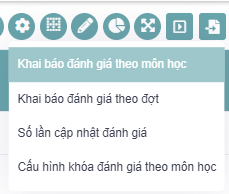 Click Khai báo đánh giá theo môn học >> màn hình chuyển đến chức năng Môn học cho lớp