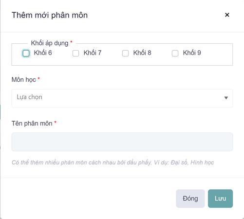 - Trường Tên phân môn được nhập tối đa 250 kí tự