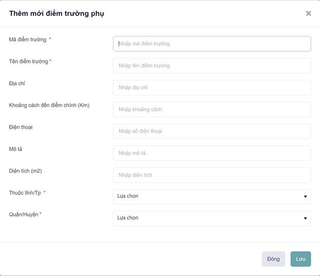 Bước 2: NSD thực hiện thêm mới điểm trường phụ tại màn hình thêm mới