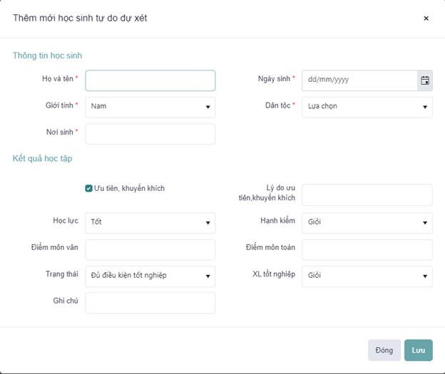 - Bước 1: Đăng nhập >> Chọn Menu “Học sinh” >> Chọn chức năng “QL thông tin tốt nghiệp ” >> Chọn tab “ Tự do dự xét”