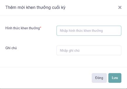 - Bước 3: Hiển thị ra Popup Thêm mới Khen thưởng cuối kì
