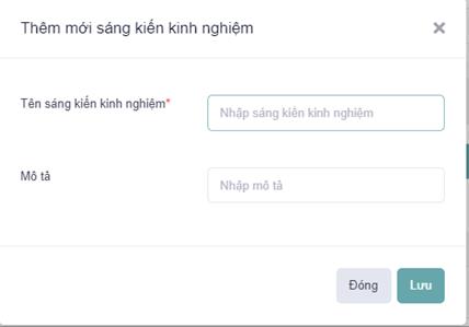 - Bước 3: Hiển thị ra Popup Thêm mới Sáng kiến kinh nghiệm