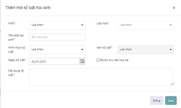 - Bước 3: Hiển thị ra màn hình Thêm mới kỷ luật