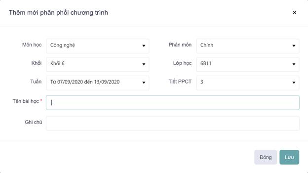 Bước 3: Hiển thị ra màn hình thêm mới phân phối chương trình