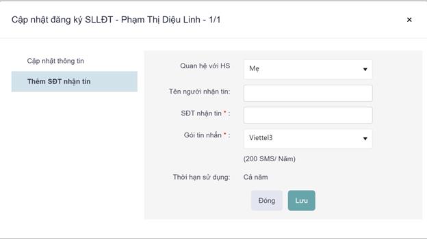 Bước 3: NSD thực hiện chỉnh sửa – cập nhập sđt tại màn hình Thêm SĐT nhận tin
