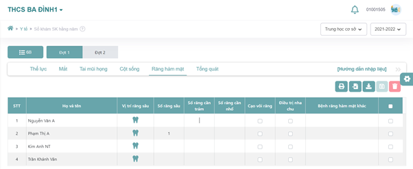 + Cạo vôi răng: Kích chuột vào ô nếu học sinh đó cần cạo vôi răng
