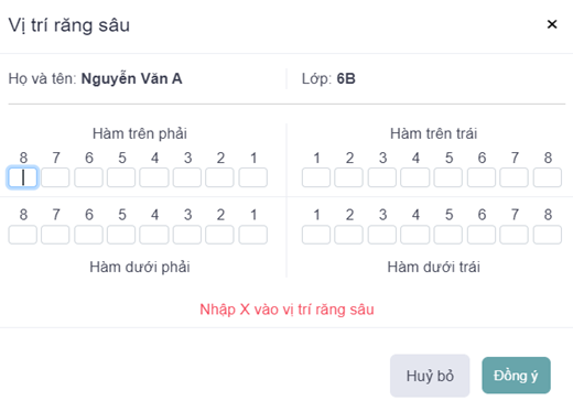 => NSD nhập x hoặc X vào vị trí răng sâu cần điền