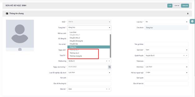 - Ngày thôi học phải nhập đúng định dạng dd/mm/yyyy và không được nhập quá ngày hiện tại