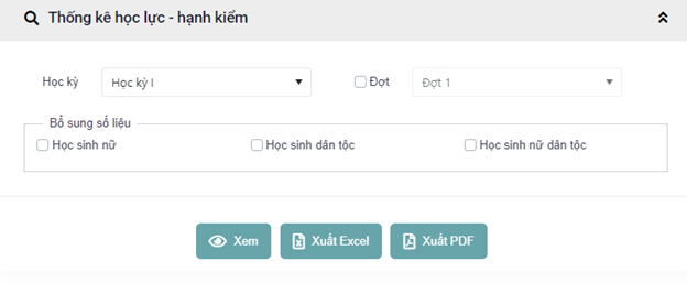Bước 2: Hiển thị màn hình Thống kê xếp loại học lực – hạnh kiểm