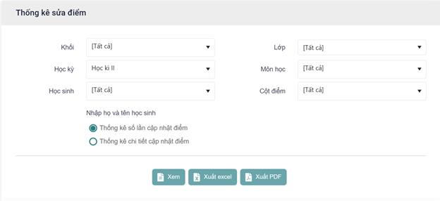 Bước 2: Hiển thị màn hình Thống kê sửa điểm