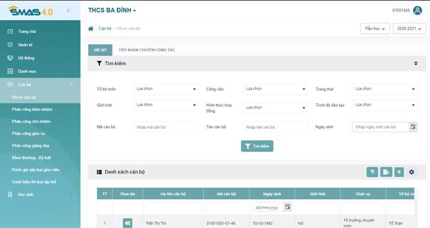 - Bước 1: Đăng nhập >> Vào menu “Cán bộ” >> Vào Chức năng “Hồ sơ cán bộ”