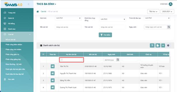 kiếm tại danh sách cán bộ