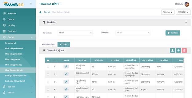 - Bước 1: Đăng nhập >> Vào menu “Cán bộ” >> Chọn “Khen thưởng-Kỷ luật” Tại màn hình khen thưởng-kỷ luật chọn tab “ Kỷ luật”.