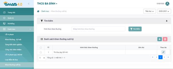 - Bước 1: Đăng nhập >> Vào menu “Danh mục” >> Vào Chức năng “Khen thưởng cuối kì”