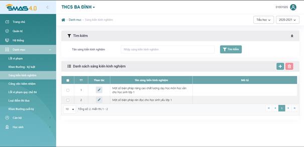 - Bước 1: Đăng nhập >> Vào menu “Danh mục” >> Vào Chức năng “Sáng kiến kinh nghiệm”