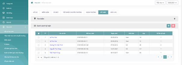 - Bước 2: Hiển thị màn hình Kỷ luật học sinh