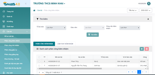 - Bước 1: Đăng nhập >> Vào menu “Cán bộ” >> Vào Chức năng “Phân công kiêm nhiệm” >> Chọn Tab “Phân công kiêm nhiêm”