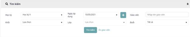 - Bước 3: Click nút “Tìm kiếm” để thực hiện tìm kiếm, click “Ẩn giáo viên ” để ẩn thông tin giáo viên tại bảng kết quả tìm kiếm