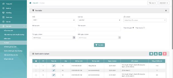 - Bước 1: Đăng nhập >> Chọn Menu “Học sinh” >> Chọn chức năng “Vi phạm”