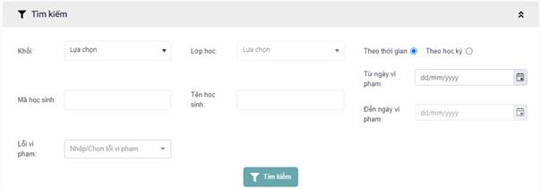 - Phải chọn điều kiện tìm kiếm mới hiển thị danh sách ( ít nhất là trường Khối )