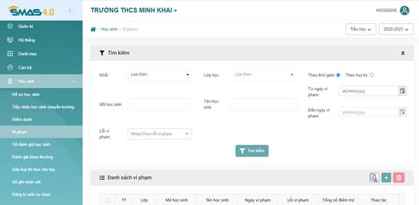 Chức năng này hỗ trợ người dùng trong việc quản lý vi phạm của học sinh. Các chức năng gồm:
