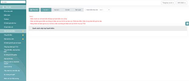 + Nếu chọn “Cả năm” hoặc “Rèn luyện thì “Hạnh kiểm theo đợt” sẽ bị ẩn