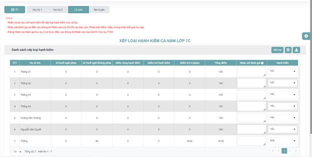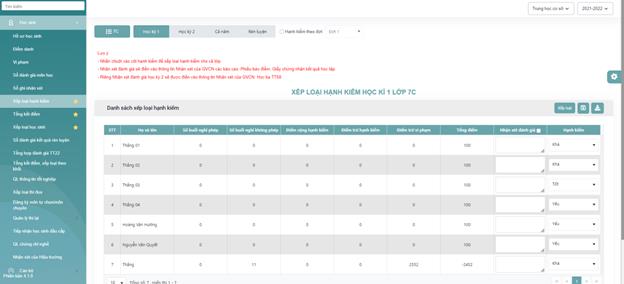 - Chức năng này hỗ trợ người dùng trong việc xếp loại hạnh hiểm của học sinh