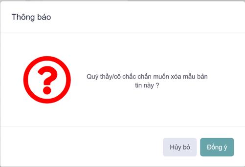 Lưu ý: Chỉ có thể thực hiện thao tác xóa đối với các bản tin đc NSD thêm mới ( Các bản tin được hiển thị bên dưới chức năng Thêm mới và đc đánh dấu màu cam)
