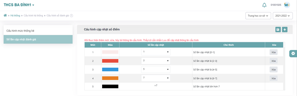 cập nhật sổ điểm”, NSD kích tại thông tin