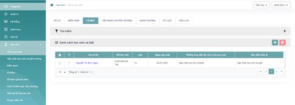 - Bước 3: Hiển thị màn hình danh sách học sinh cá biệt