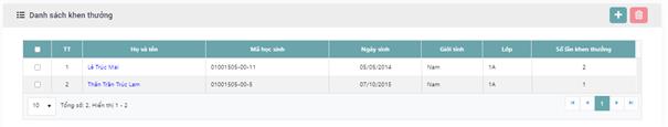 - Bước 3: Hiển thị màn hình danh sách khen thưởng