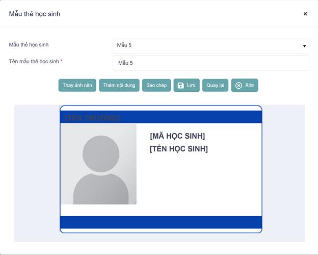 Hiển thị màn hình sửa mẫu thẻ học sinh.