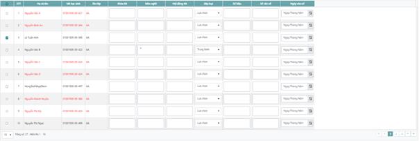 Bước 2: Chọn học sinh muốn xoá có trong bảng