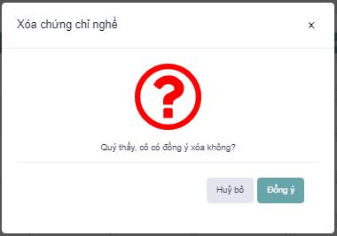 Bước 4: Hiển thị hộp thoại “Xoá chứng chỉ nghề”