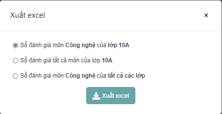 - Bước 2: Chọn Lớp, Học kì, môn học cần xuất excel >> Nhấn nút để xuất file excel
